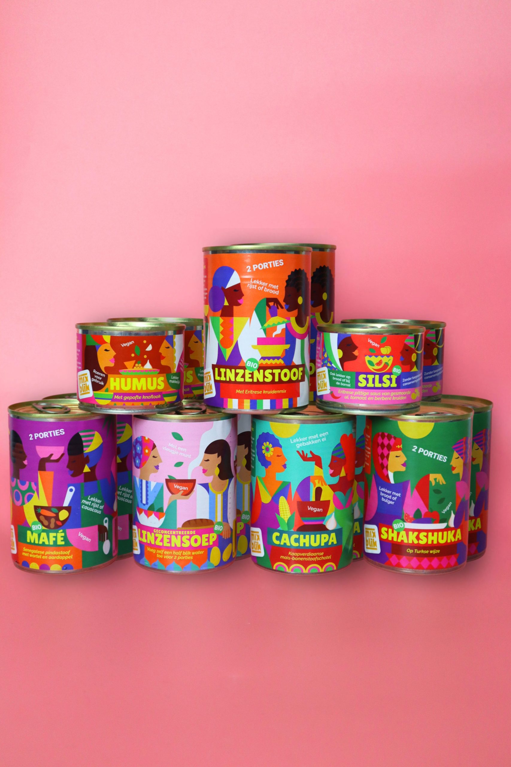 Het Mixblik-noodpakket bevat 14 gezonde en lang houdbare maaltijden, gemaakt met aandacht voor mens en maatschappij.